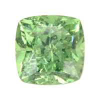 Introducing a true marvel for gemstone enthusiasts, the 0.72 carat cushion-shaped green demantoid garnet from Madagascar promises to take center stage in any collection. With its exceptional dimensions of 4.95 x 4.93 x 3.65 mm, this gemstone stands out due to its rarity both in size and in its medium intense color intensity. Unlike any other, its mixed brilliant cut and excellent polish accentuate its captivating green hue, creating an enchanting play of light that is simply irresistible. This demantoid garnet has a clarity grade of slightly included, thoughtfully evaluated at eye level, offering a unique charm that enhances its natural allure.