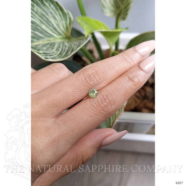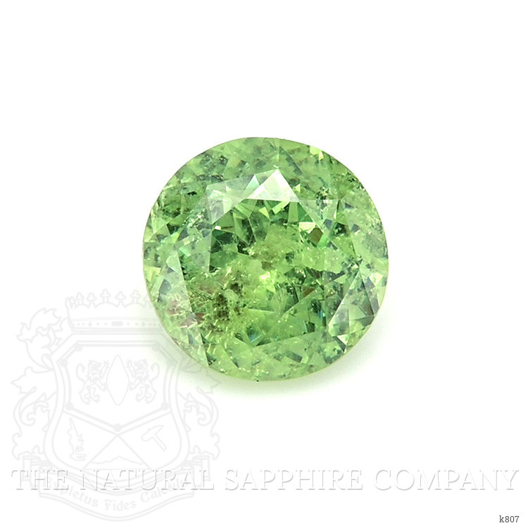 Discover unparalleled elegance with our exquisite demantoid garnet, an offering from The Natural Gemstone Company that promises to surpass your highest expectations. This remarkable gemstone, with its transparent 0.74 carat weight and precise round shape, shines as a testament to nature's artistry. The distinguished dimensions of 5.46 x 5.50 x 3.33 mm make this gem a rare find in both size and allure. Its medium intense green color intensity is a visual marvel, capturing the vibrant essence unique to demantoid garnets.