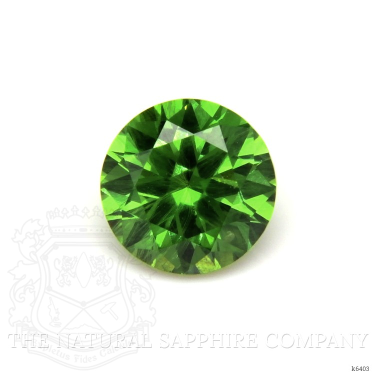 In the captivating realm of gemstones, there exists a rarified jewel that possesses a unique allure—our exquisite 0.74 carat green demantoid garnet. Sourced from the rich mineral deposits of Russia, this demantoid garnet captivates the imagination with its intense color intensity. Its impressive round shape has been sculpted to perfection, encompassing dimensions of 5.33 x 5.33 x 3.53 mm. This gem harmoniously combines an illustrious past with the timeless appeal of nature's artistry, making it a treasured acquisition for connoisseurs and collectors alike. The Natural Gemstone Company takes great pride in offering you this distinguished gemstone, resonating with the echoes of an ancient legacy.