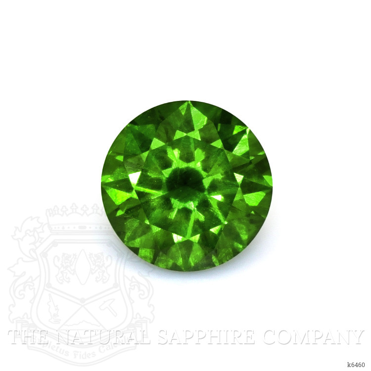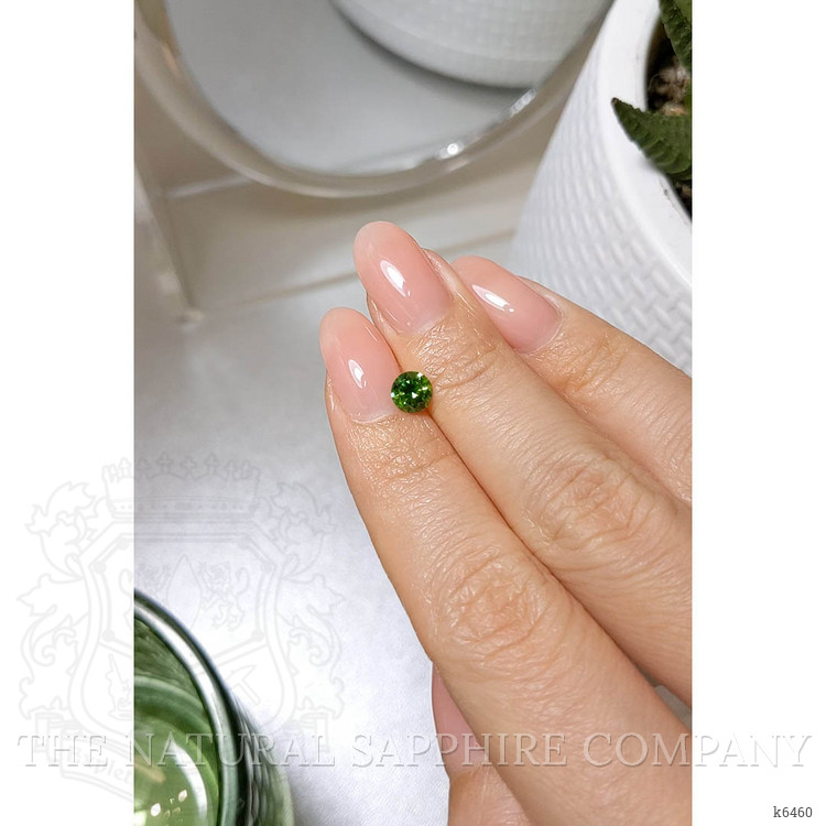 Discover a masterpiece of nature with our exclusive offering from The Natural Gemstone Company: a dazzling 0.82 carat round shape green demantoid garnet. This gemstone is not merely a piece of jewelry, but a rare treasure that elevates you to an elite status of collectors who appreciate true distinction. Highlighting dimensions of 5.61 x 5.63 x 3.59 mm, this exceptional gemstone is designed to captivate and enchant. Its design follows a mixed brilliant cut, ensuring each sparkle is maximized and each glance is unforgettable. With a clarity grade of very slightly included, evaluated meticulously at eye level, you are presented with a gem that maintains a stunning countryside under a magnifying glass of precision.