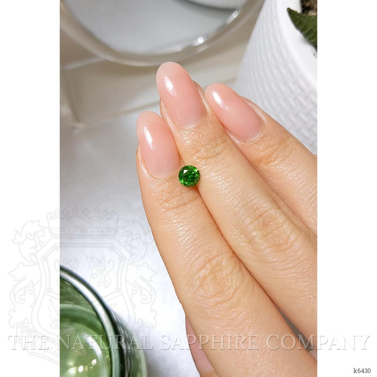 The Natural Gemstone Company proudly presents a stunningly versatile piece of gemstone art, the transparent 0.85-carat round shape green demantoid garnet. With its exquisite dimensions of 5.65 x 5.64 x 3.70 mm and mixed brilliant cut, this garnet stands out in a league of its own. Its intense color intensity guarantees a captivating presence, whether worn during a casual outing or a formal evening event. The very slightly included clarity grade promises an exceptional brilliance, evaluated thoroughly to ensure only the finest quality reaches our discerning clientele.