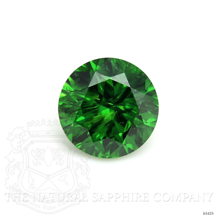 Exquisitely crafted with a mixed brilliant cut, this gem dances with light, offering an allure that is both magnetic and enchanting. Its dimensions of 5.65 x 5.65 x 3.71 mm create a harmonious balance, effortlessly capturing both the eye and heart. The demantoid garnet reveals a vivid color intensity that draws one into its depth, a vivid green that echoes the lush beauty of untamed nature. Its slightly included clarity, evaluated at eye level, adds an exquisite dimension to the stone, telling a story of natural refinement and authenticity that no synthetic gemstone can match.