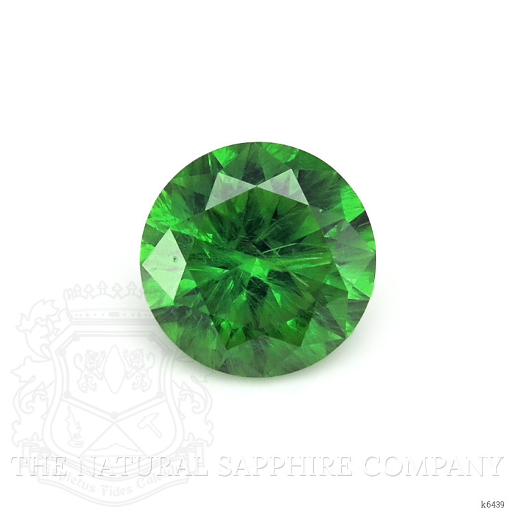 Hidden within the lush embrace of the Russian landscape lies a treasure as vibrant and enchanting as the fields from which it emerged. The exquisite demantoid garnet, now captured and curated by The Natural Gemstone Company, tells a story of nature’s artistry honed over millennia. This 0.90 carat gem with its round shape and perfect dimensions of 5.87 x 5.90 x 3.67 mm, dazzles the senses with its vivid green hue, a sight akin to sunlight filtering through dense summer leaves. Every contour of this demantoid speaks of an age-old allure, a beauty that has witnessed countless seasons and stories unfold beyond the horizon.