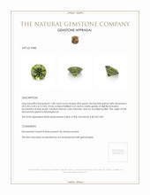Look closely at its slightly included clarity and you'll catch an essence of life in its most natural form, an echo of imperfections that make every moment precious. Light waltzes over its excellent polish, heightening the gem's mystique and inviting admirers into a world of alluring charm. This demantoid garnet is not just a gemstone, it's an invitation to join a timeless romance—each facet a whisper, each glint a story. Find your own chapter in this emblem of love and promise from The Natural Gemstone Company.