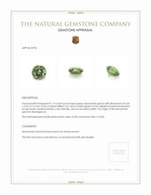 Compared to the sapphires of Ceylon and the emeralds of Colombia, this gem stands as a unique ode to nature's artistry. Its medium intense color holds the allure of a sunlit grove, its hue reminiscent of the vibrant greens found deep within enigmatic forests. The clarity of this garnet, very slightly included and evaluated with uncompromising precision, invites the beholder into a realm where serenity and warmth intertwine.