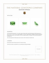At The Natural Gemstone Company, we provide a masterpiece that ends your search for perfect exclusivity. Slightly included when evaluated at eye level, this gemstone showcases nature’s unique fingerprint, adding to its distinct charm. This green demantoid garnet is more than an accessory—it’s a statement of elegance and individual taste. Its unmatched combination of size and color makes it a rare find in the gemstone world, securing its place as a sought-after piece for those who appreciate rarity and quality.