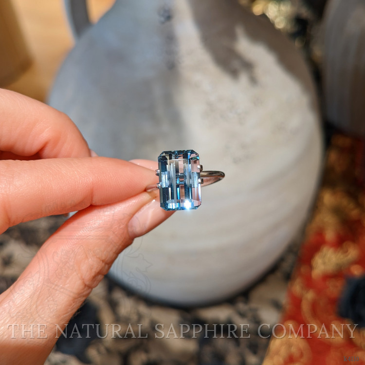 At The Natural Gemstone Company, we understand the profound emotions that the perfect gemstone can inspire—a radiant declaration of love, a symbol of everlasting commitment, or a cherished memory. Our men's ring, featuring a magnificent 6.13 carat emerald-cut blue aquamarine, is more than just a piece of jewelry; it’s a timeless testament to eternal love. Transparent and mesmerizing with its dimensions of 12.83 x 8.88 x 6.83 mm, this aquamarine exudes an ethereal charm that captivates the soul. Its eye-clean clarity and very light color saturation reveal the stone's natural beauty, each facet polished to perfection with an excellent finish.