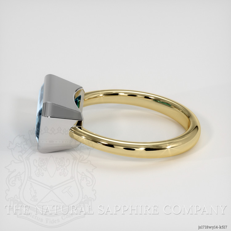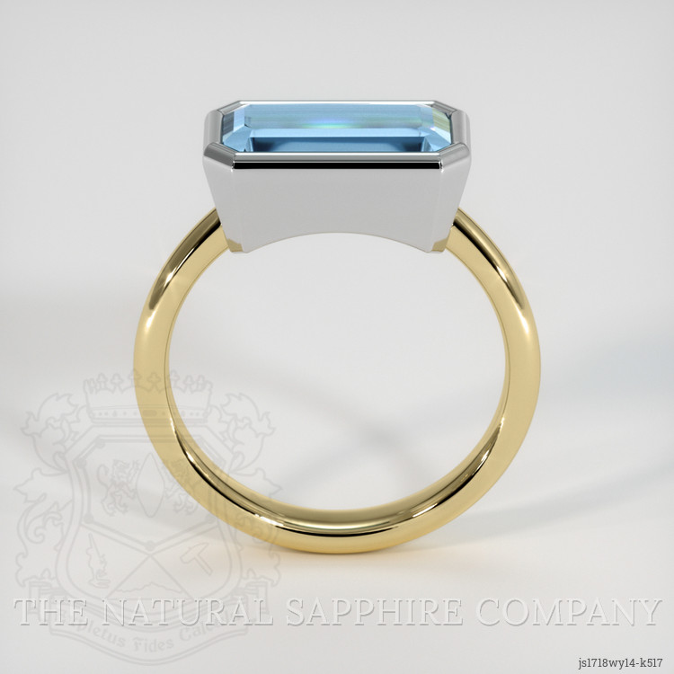 The men's ring features a beautiful, transparent 2.96 carat emerald cut shape blue tourmaline with the dimensions of 11.33 x 6.32 x 4.82 mm and a fancy cut. It has a clarity grade of very slightly included (evaluated at eye level), medium intense color saturation, and an excellent polish. The origin of this tourmaline is Namibia.