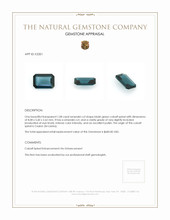 The ring features a beautiful, transparent 1.08 carat emerald cut shape bluish green cobaltspinel with the dimensions of 8.08 x 5.60 x 2.62 mm and a emerald cut. It has a clarity grade of very slightly included (evaluated at eye level), intense color saturation, and an excellent polish. The origin of this cobaltspinel is Ceylon (Srilanka).
