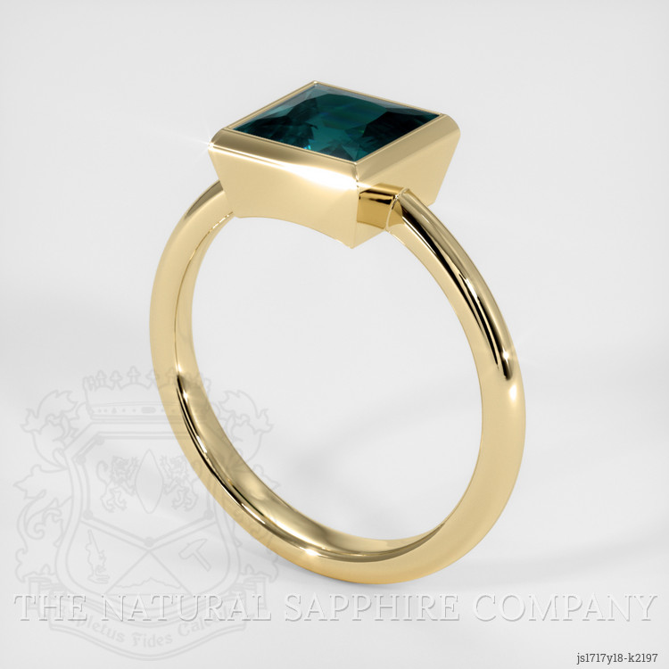 The men's ring features a beautiful, transparent 1.63 carat princess shape bluish green cobaltspinel with the dimensions of 7.07 x 6.97 x 4.09 mm and a princess cut. It has a clarity grade of very slightly included (evaluated at eye level), vivid color saturation, and an excellent polish. The origin of this cobaltspinel is Ceylon (Srilanka).