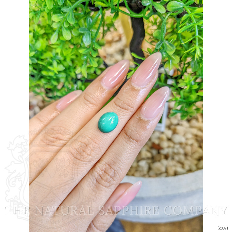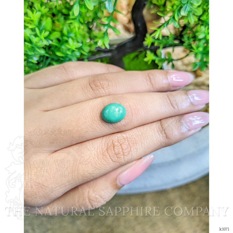 Introducing a distinguished piece from The Natural Gemstone Company, this men's ring is a testament to the art of fine jewelry crafting and the timeless appeal of natural gemstones. At the heart of this stunning piece lies a 2.91-carat turquoise gemstone, renowned for its captivating bluish-green hue. Sourced from the historic mines of Persia, the turquoise boasts dimensions of 10.84 x 8.65 x 4.58 mm and is shaped into an elegant oval cabochon. The cabochon cut, with its smooth and polished surface, enhances the stone's natural luster while emphasizing the intense saturation of its color. Unlike faceted stones, the cabochon style provides a continuous, uninterrupted view of the gemstone's rich tones, rendering it both striking and understated.