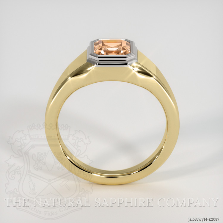 The men's ring features a beautiful, transparent 1.15 carat emerald cut shape brown tourmaline with the dimensions of 6.10 x 5.71 x 4.06 mm and a emerald cut. It has a clarity grade of very slightly included (evaluated at eye level), medium intense color saturation, and an excellent polish. The origin of this tourmaline is Mozambique.