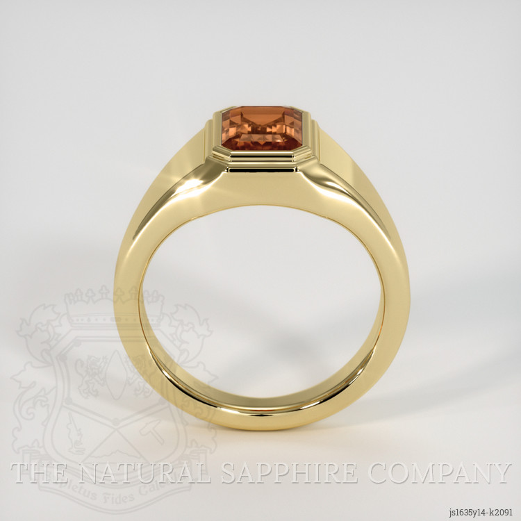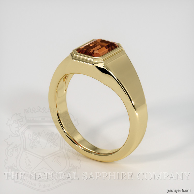 The men's ring features a beautiful, transparent 1.71 carat emerald cut shape brown tourmaline with the dimensions of 8.01 x 5.90 x 4.31 mm and a emerald cut. It has a clarity grade of eye clean (evaluated at eye level), intense color saturation, and an excellent polish. The origin of this tourmaline is Mozambique.