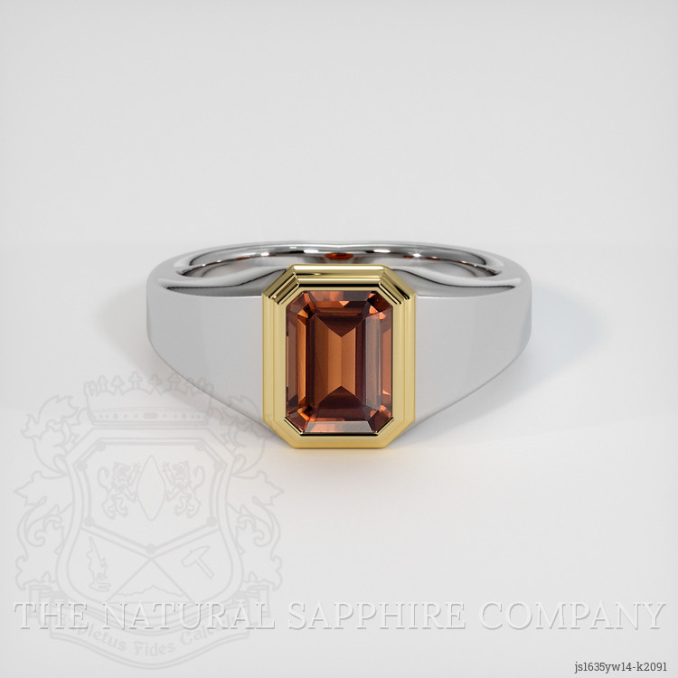 The men's ring features a beautiful, transparent 1.71 carat emerald cut shape brown tourmaline with the dimensions of 8.01 x 5.90 x 4.31 mm and a emerald cut. It has a clarity grade of eye clean (evaluated at eye level), intense color saturation, and an excellent polish. The origin of this tourmaline is Mozambique.