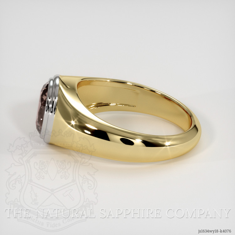 The men's ring showcases an exquisite, transparent 1.39 carat oval-shaped brown tourmaline. With precise dimensions of 8.11 x 6.10 x 4.51 mm, the gem is expertly cut using a mixed brilliant style that enhances its inherent beauty. The clarity is graded as very slightly included upon eye level evaluation, ensuring minimal imperfections are visible. The tourmaline's medium color saturation lends a warm, inviting hue that pairs beautifully with any attire. Furthermore, the gem boasts an excellent polish, reflecting light elegantly. Sourced from Mozambique, this gemstone promises authenticity and high quality.