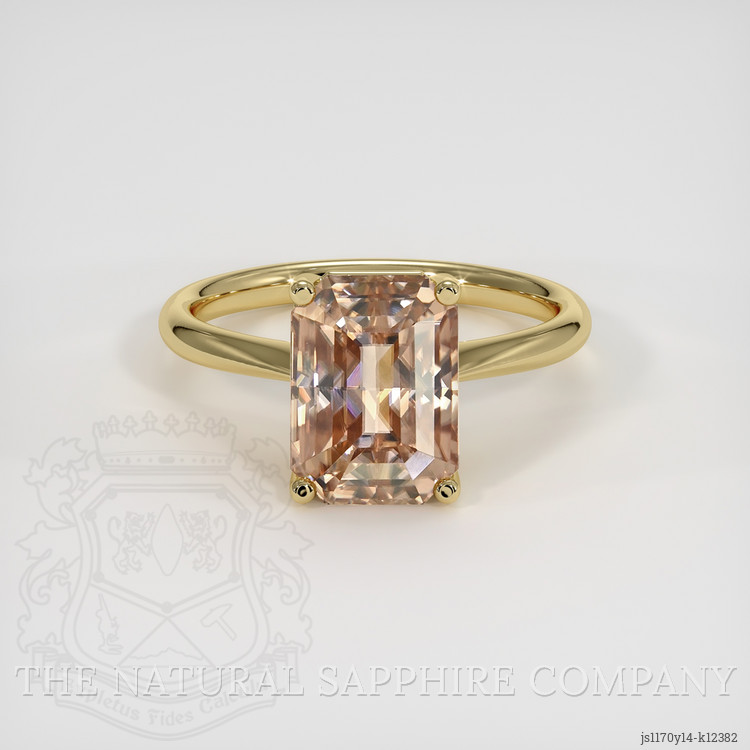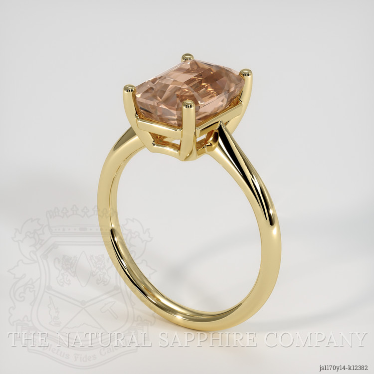 The zircon exhibits a medium intense color saturation, achieved naturally without any enhancement, signifying purity and authenticity, much like the promise you make to your beloved. Its beautiful brown tone radiates warmth and a subtle charm that captivates. With dimensions of 9.50 x 6.98 x 6.21 mm, the emerald cut showcases a clarity grade of very slightly included, promising exceptional brilliance and depth. Its transparent beauty invites a serene reflection, akin to a love that's grounded and enduring. Set exquisitely in 18K yellow gold, the ring exudes a classic elegance, rendering it a contemporary treasure rooted in tradition.
