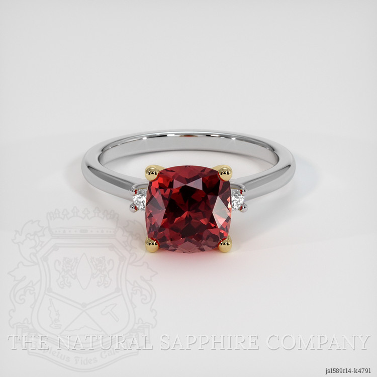 In the heart of this ring lies a tale of timeless romance and unspoken dreams It enchants the eye with a breathtaking transparent 3.10 carat cushion-shaped brownish-red malayagarnet from the mystical lands of Tanzania Its dimensions of 7.52 x 7.41 x 6.22 mm and mixed brilliant cut speak of unparalleled craftsmanship Every facet and every edge polished to perfection whispers of love everlasting Bearing a clarity grade of very slightly included this gem resonates with intense color saturation reflecting the depth of passion and the fire within the soul