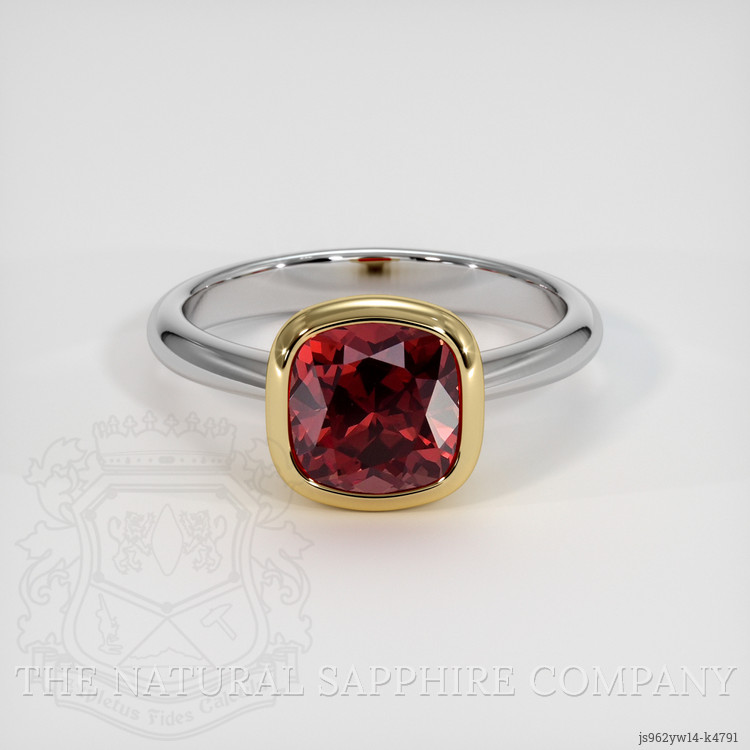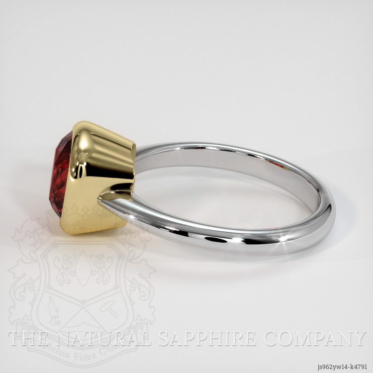 This particular malayagarnet embodies the sublime beauty of its Tanzanian heritage. Its settings create an enchanting visual blend of tradition and contemporary design. The rich, vivid hues contrast magnificently with the lustrous sheen of the metals. Set entirely in 18K yellow and white gold, the ring merges the warm glow of yellow gold with the sleek elegance of white gold. This combination not only elevates the gem's beauty but also enhances its durability. The solid gold setting encases the cultured gemstone in a seamless harmony of strength and splendor, ensuring that it withstands the rigors of everyday wear without compromising its pristine appearance.