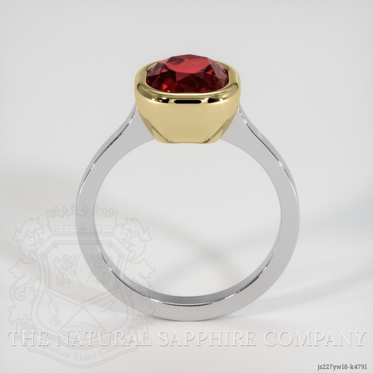 Encased in a sophisticated setting of 18K yellow gold and 18K white gold, the ring's design impeccably merges two precious metals, creating a timeless piece that exudes class and elegance. The yellow gold bezel setting not only securely holds the gemstone but also complements its warm tone, while the white gold band offers a contemporary contrast that enhances the overall aesthetic.