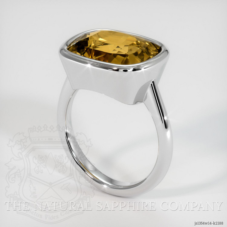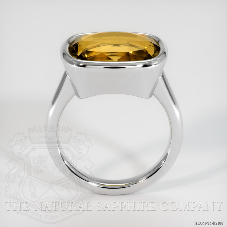 The men's ring features a beautiful, transparent 8.54 carat cushion shape golden brown sinhalite with the dimensions of 13.72 x 11.11 x 6.63 mm and a mixed brilliant cut. It has a clarity grade of very slightly included (evaluated at eye level), intense color saturation, and an excellent polish. The origin of this sinhalite is Ceylon (Sri Lanka).