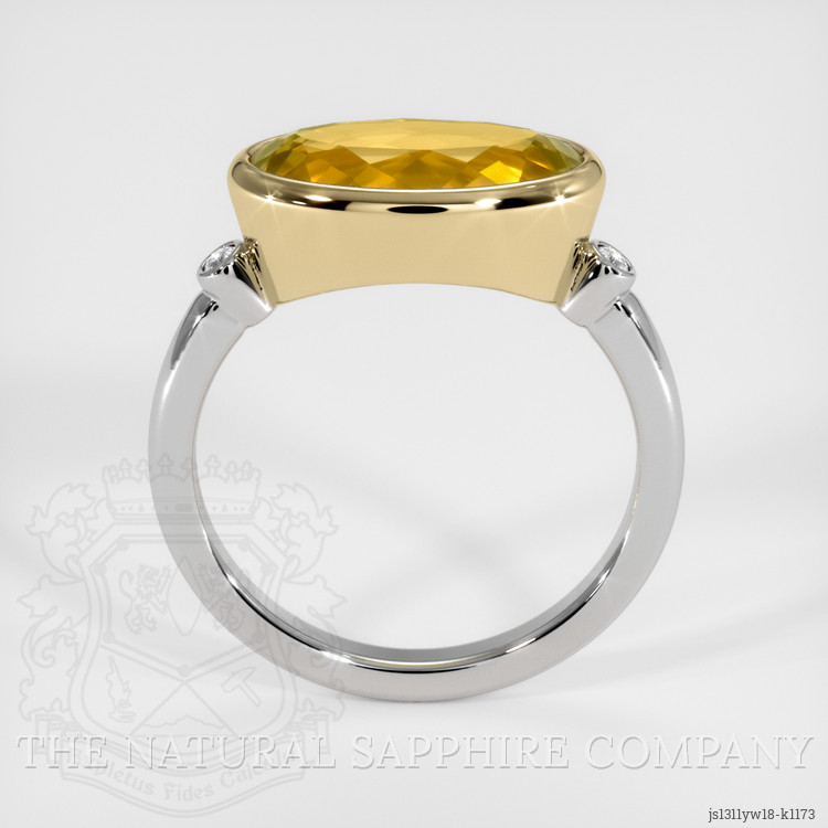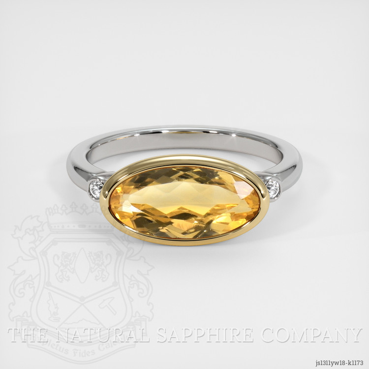 The ring features a beautiful, transparent 2.92 carat oval shape golden orange topaz with the dimensions of 12.50 x 6.22 x 4.44 mm and a mixed brilliant cut. It has a clarity grade of very slightly included (evaluated at eye level), intense color saturation, and an excellent polish. The origin of this topaz is Brazil.