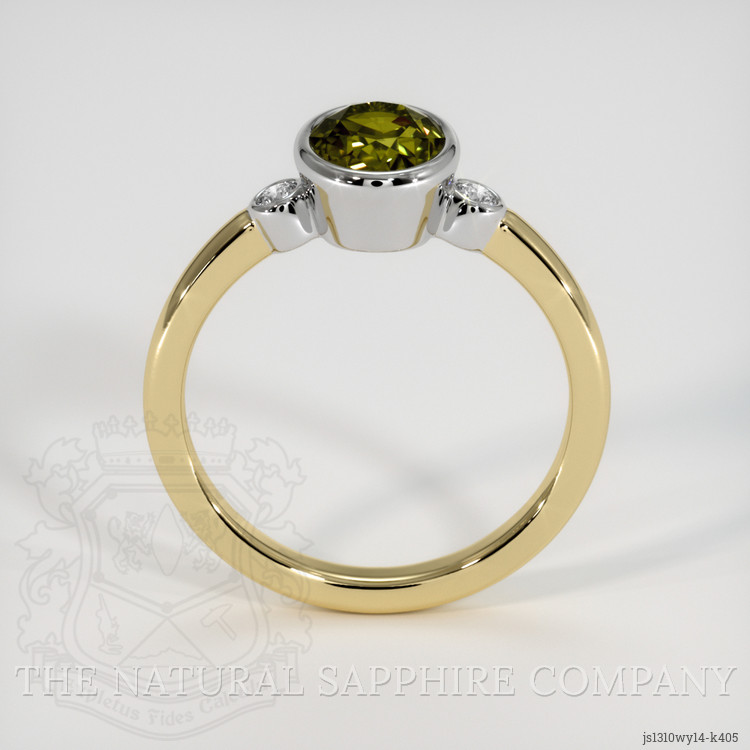 The ring features a beautiful, transparent 1.69 carat cushion shape green andalusite with the dimensions of 7.78 x 6.01 x 4.68 mm and a mixed brilliant cut. It has a clarity grade of very slightly included (evaluated at eye level), intense color saturation, and an excellent polish. The origin of this andalusite is Australia.