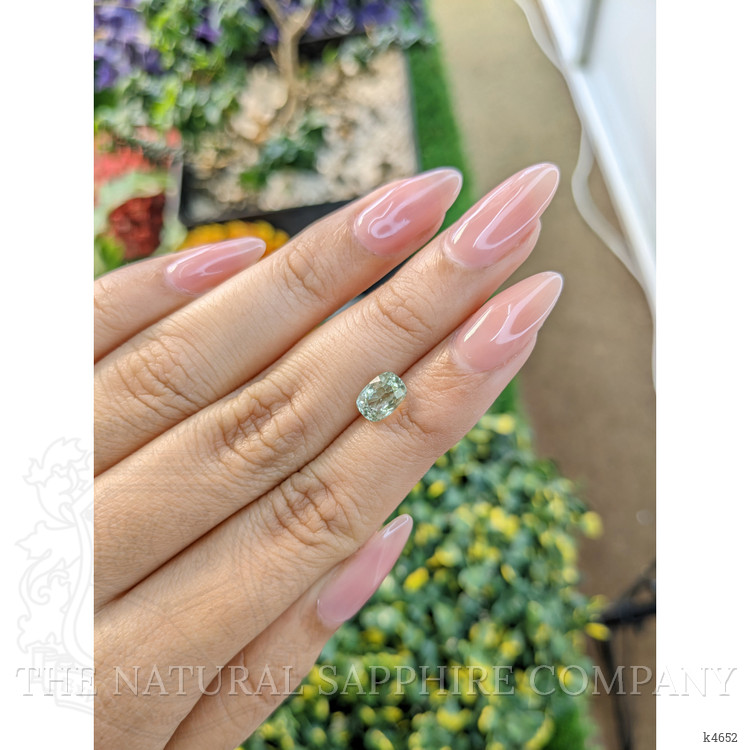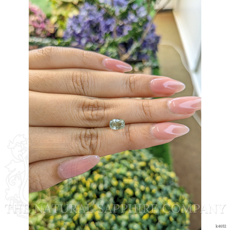 The cushion shape of this 1.45 carat chrysoberyl, with dimensions of 7.57 x 5.35 x 4.10 mm, highlights its transparency and clarity, graded as very slightly included, which resonates with a story of elegance forged over eons. Its medium light color saturation gives it an ethereal quality, like enchanting sunlight filtering through a verdant canopy. In the world of gemstones, while lab-grown alternatives offer consistent quality, they often lack the story and unique energy found only in those formed through the earth's natural processes. This chrysoberyl possesses an authenticity and character, rooted in its extraordinary geological journey, that’s simply irreplaceable by artificial means.