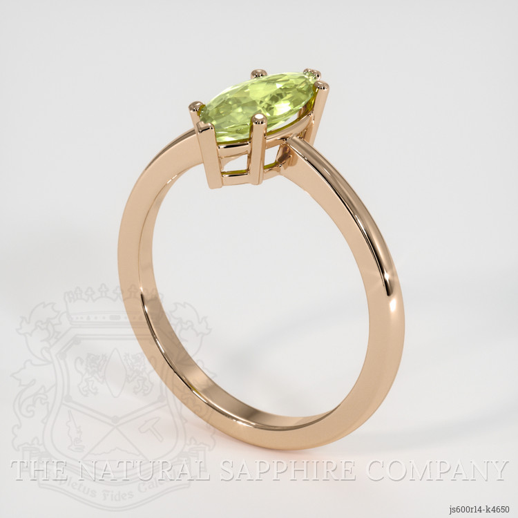 The ring features a beautiful, transparent 1.09 carat marquise shape green chrysoberyl with the dimensions of 10.80 x 4.98 x 2.88 mm and a mixed brilliant cut. It has a clarity grade of very slightly included (evaluated at eye level), medium color saturation, and an excellent polish. The origin of this chrysoberyl is Madagascar.