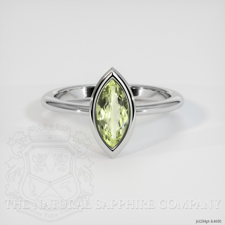 The ring features a beautiful, transparent 1.09 carat marquise shape green chrysoberyl with the dimensions of 10.80 x 4.98 x 2.88 mm and a mixed brilliant cut. It has a clarity grade of very slightly included (evaluated at eye level), medium color saturation, and an excellent polish. The origin of this chrysoberyl is Madagascar.