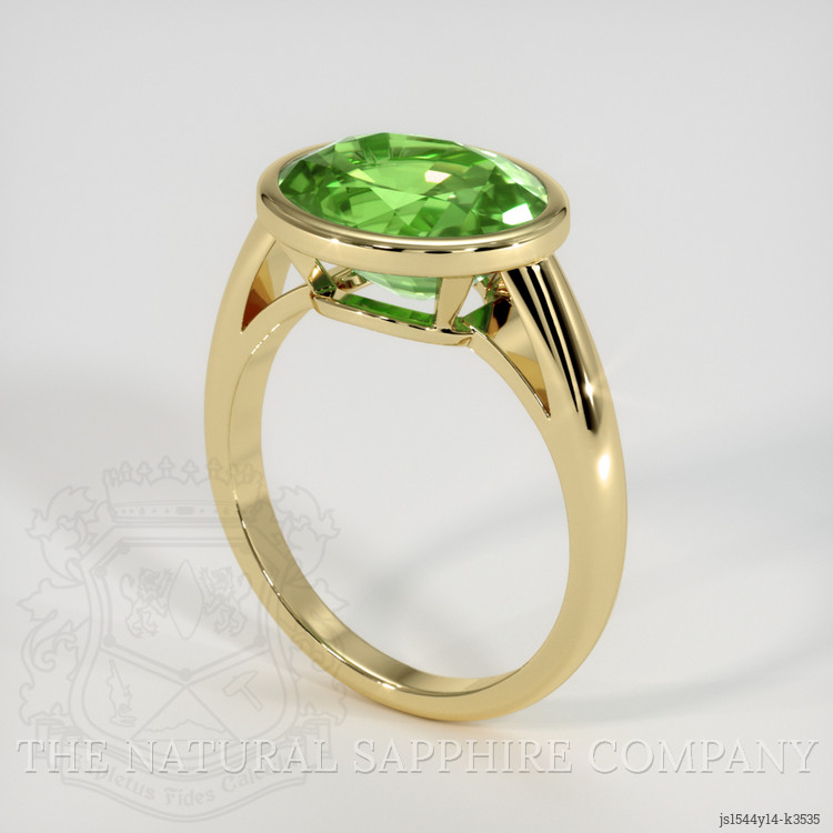 The men's ring features a beautiful, transparent GIA certified Green 3.96 carat oval shape green paraibatourmaline with the dimensions of 11.75 x 9.62 x 5.65 mm and a mixed brilliant cut. It has a clarity grade of very slightly included (evaluated at eye level), intense color saturation, and an excellent polish. The origin of this paraibatourmaline is Mozambique.