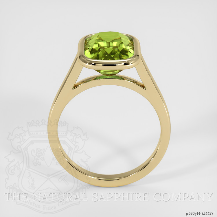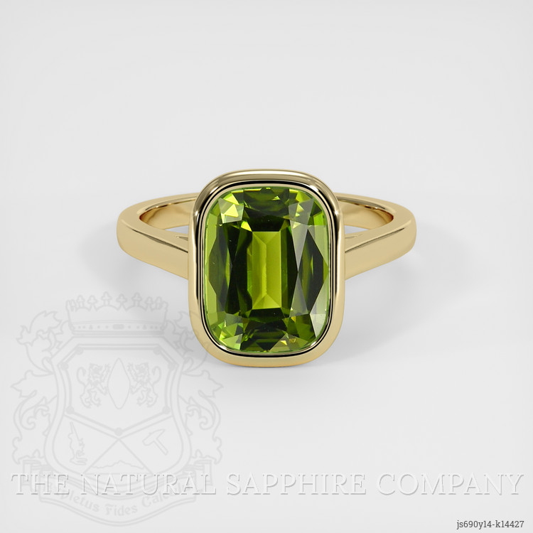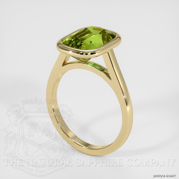This exceptional peridot is set in luxurious 14K yellow gold, a classic choice that complements its natural vivacity. Known for its provenance, the peridot's origin from Tanzania adds a layer of rarity, making it a piece of both aesthetic and geographical significance. Free from enhancements, this gem speaks for itself with pure, unaltered beauty. The cushion shape, known for its historical elegance, is reminiscent of renowned pieces throughout history, such as the famed Hope Diamond. Our setting captures this historical essence while maintaining a contemporary allure, making it ideal for modern tastes seeking those echoes of the past.