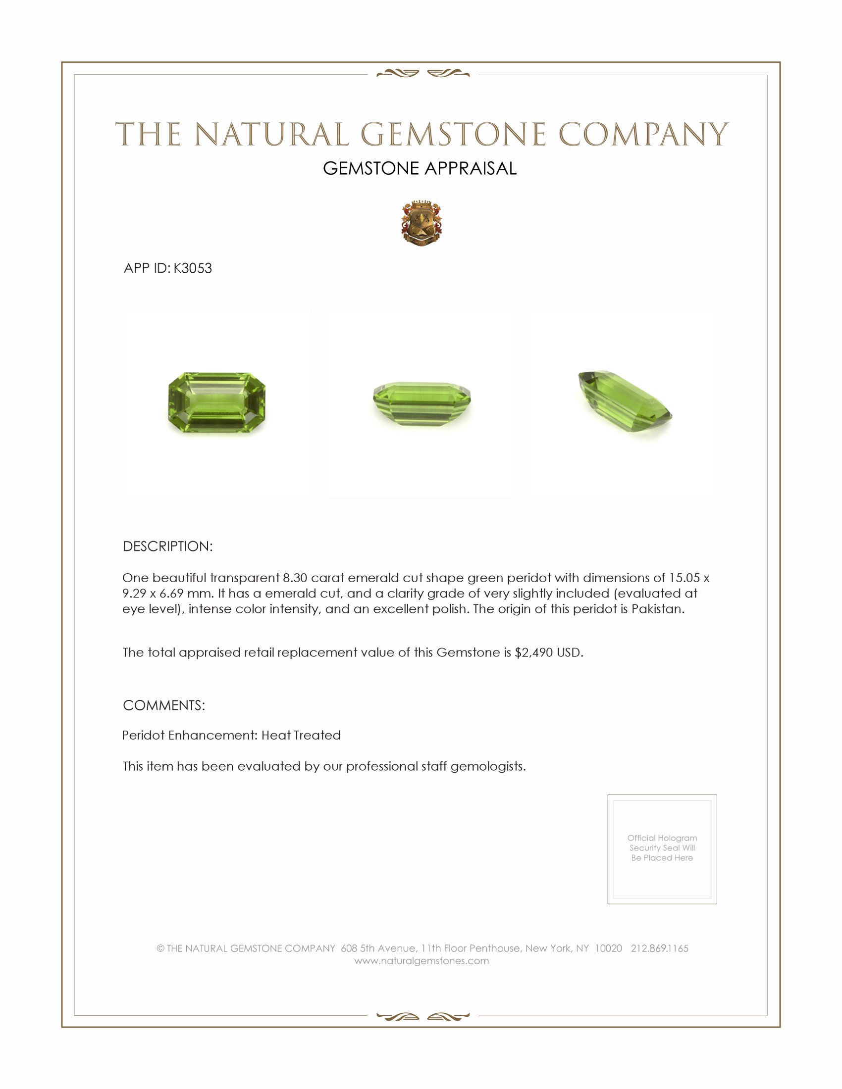 Vedic Peridot Ring 8.30 Ct., 18K Yellow Gold