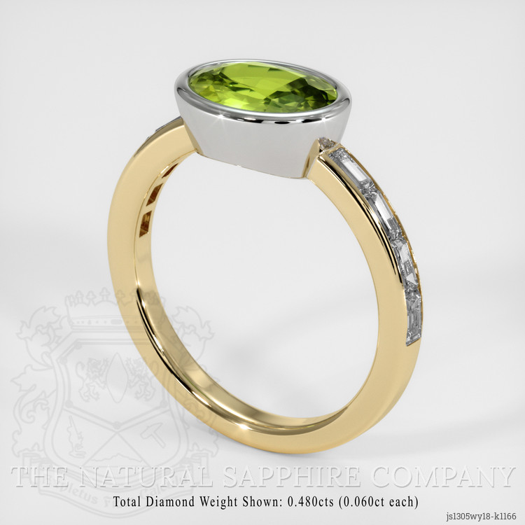Accent Stones Peridot Ring 1.47 Ct., 18K White & Yellow