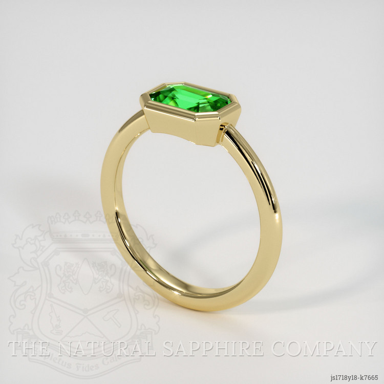 Set entirely in luxurious 18K yellow gold, the ring is a perfect amalgamation of craftsmanship and style. The choice of yellow gold complements the vibrant green of the tsavorite garnet, enhancing its rich hue and imparting a regal touch to the overall design. The gold setting is expertly polished to an excellent finish, ensuring that every facet of the ring reflects light with a mesmerizing appeal. This ring's craftsmanship speaks to a tradition of excellence, with each detail considered and each element refined to perfection.