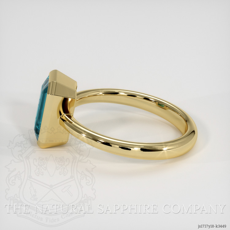 The men's ring features a beautiful, transparent 2.11 carat emerald cut shape greenish blue tourmaline with the dimensions of 9.29 x 5.87 x 4.67 mm and a emerald cut. It has a clarity grade of very slightly included (evaluated at eye level), intense color saturation, and an excellent polish. The origin of this tourmaline is Brazil.