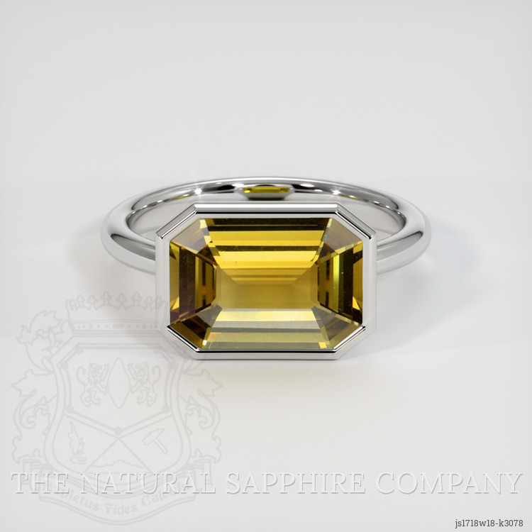 The men's ring features a beautiful, transparent 4.13 carat emerald cut shape greenish brown chrysoberyl with the dimensions of 11.75 x 8.46 x 4.62 mm and a emerald cut. It has a clarity grade of eye clean (evaluated at eye level), intense color saturation, and an excellent polish. The origin of this chrysoberyl is Ceylon (Sri Lanka).