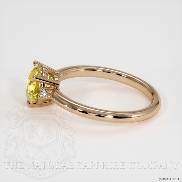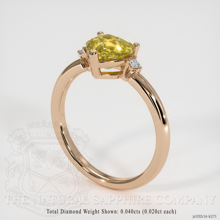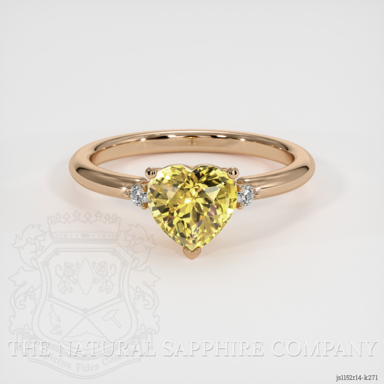 The ring features a beautiful, transparent 1.66 carat heart shape greenish yellow chrysoberyl with the dimensions of 6.75 x 7.09 x 4.91 mm and a mixed brilliant cut. It has a clarity grade of very slightly included (evaluated at eye level), medium intense color saturation, and an excellent polish. The origin of this chrysoberyl is Ceylon (Sri Lanka).