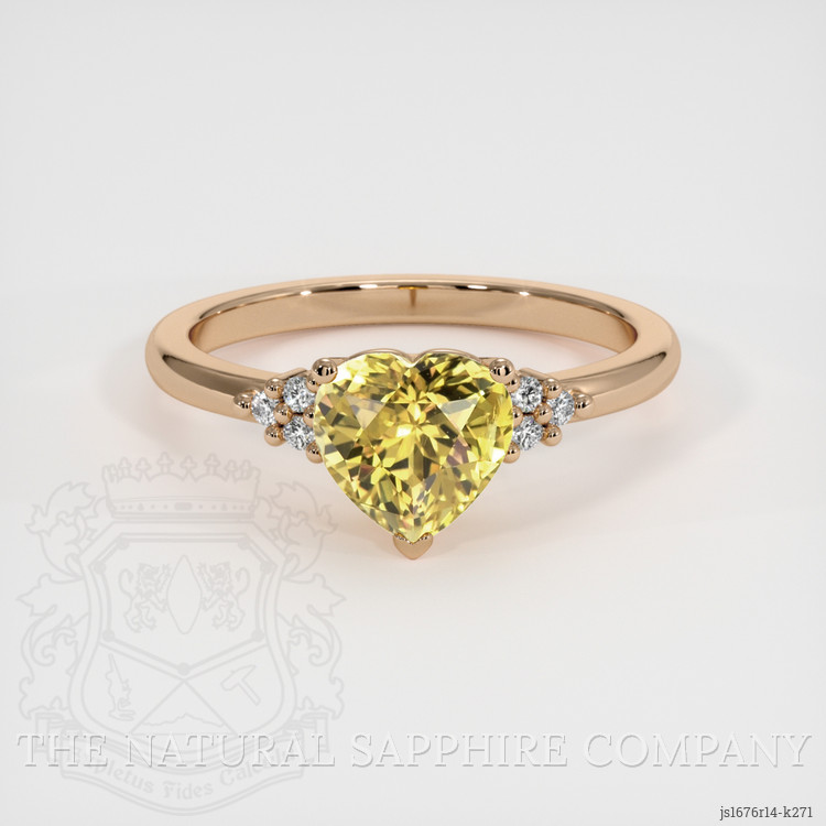 The ring features a beautiful, transparent 1.66 carat heart shape greenish yellow chrysoberyl with the dimensions of 6.75 x 7.09 x 4.91 mm and a mixed brilliant cut. It has a clarity grade of very slightly included (evaluated at eye level), medium intense color saturation, and an excellent polish. The origin of this chrysoberyl is Ceylon (Sri Lanka).