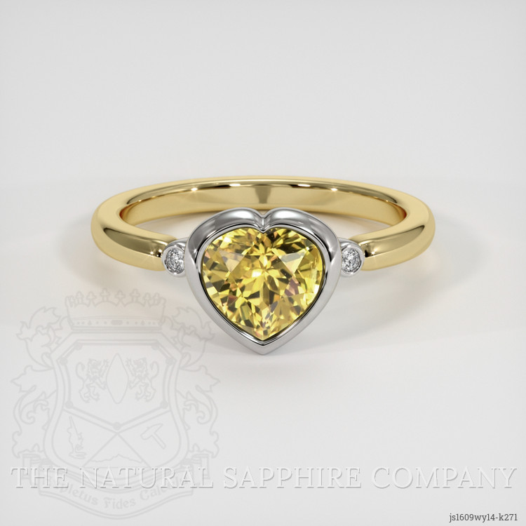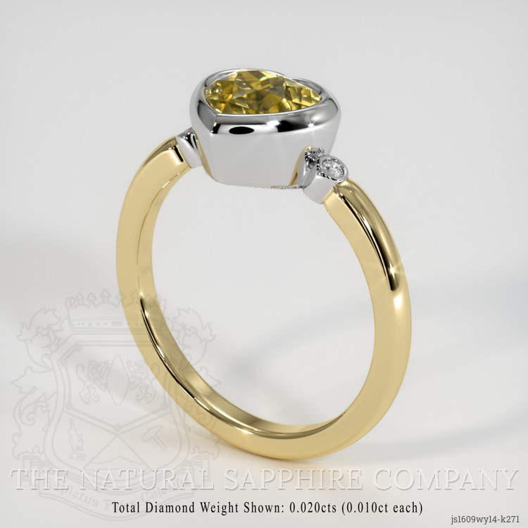 The ring features a beautiful, transparent 1.66 carat heart shape greenish yellow chrysoberyl with the dimensions of 6.75 x 7.09 x 4.91 mm and a mixed brilliant cut. It has a clarity grade of very slightly included (evaluated at eye level), medium intense color saturation, and an excellent polish. The origin of this chrysoberyl is Ceylon (Sri Lanka).