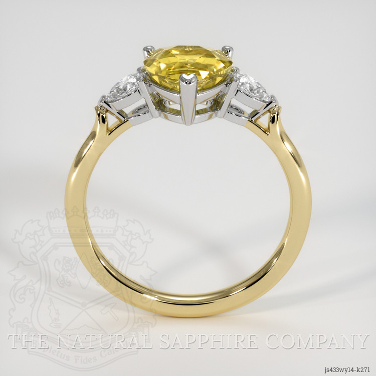 The ring features a beautiful, transparent 1.66 carat heart shape greenish yellow chrysoberyl with the dimensions of 6.75 x 7.09 x 4.91 mm and a mixed brilliant cut. It has a clarity grade of very slightly included (evaluated at eye level), medium intense color saturation, and an excellent polish. The origin of this chrysoberyl is Ceylon (Sri Lanka).