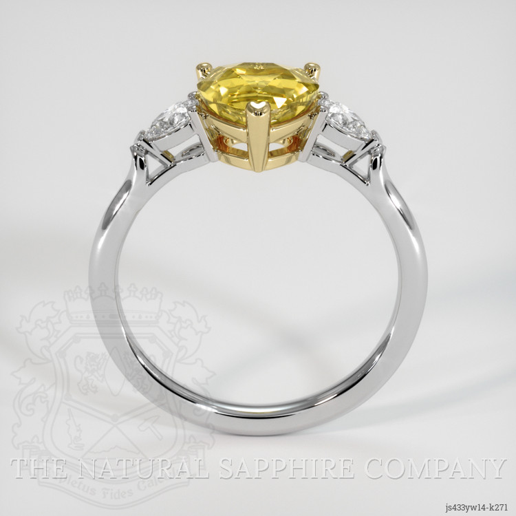 The ring features a beautiful, transparent 1.66 carat heart shape greenish yellow chrysoberyl with the dimensions of 6.75 x 7.09 x 4.91 mm and a mixed brilliant cut. It has a clarity grade of very slightly included (evaluated at eye level), medium intense color saturation, and an excellent polish. The origin of this chrysoberyl is Ceylon (Sri Lanka).