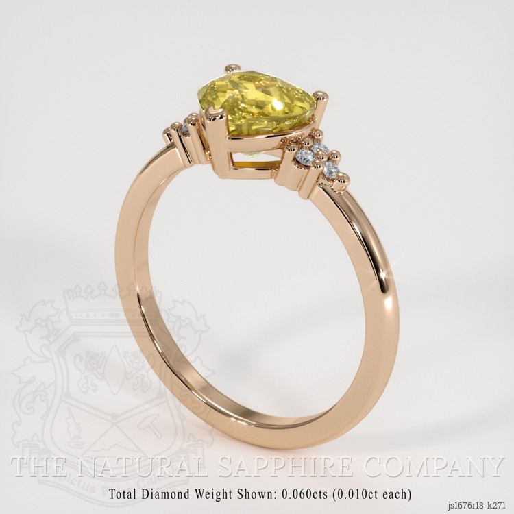 The ring features a beautiful, transparent 1.66 carat heart shape greenish yellow chrysoberyl with the dimensions of 6.75 x 7.09 x 4.91 mm and a mixed brilliant cut. It has a clarity grade of very slightly included (evaluated at eye level), medium intense color saturation, and an excellent polish. The origin of this chrysoberyl is Ceylon (Sri Lanka).