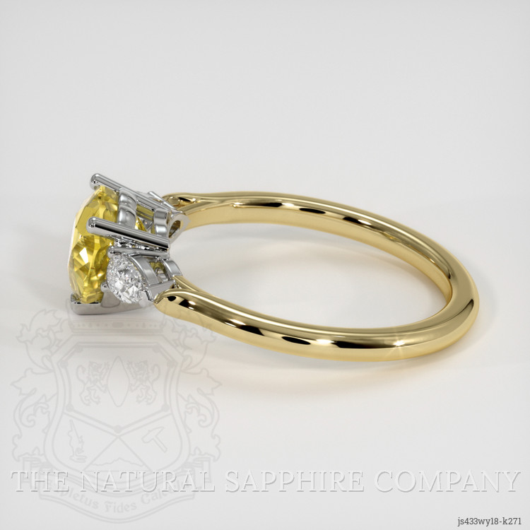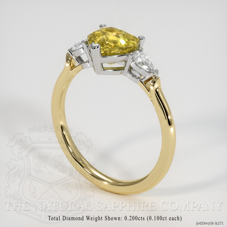 The ring features a beautiful, transparent 1.66 carat heart shape greenish yellow chrysoberyl with the dimensions of 6.75 x 7.09 x 4.91 mm and a mixed brilliant cut. It has a clarity grade of very slightly included (evaluated at eye level), medium intense color saturation, and an excellent polish. The origin of this chrysoberyl is Ceylon (Sri Lanka).