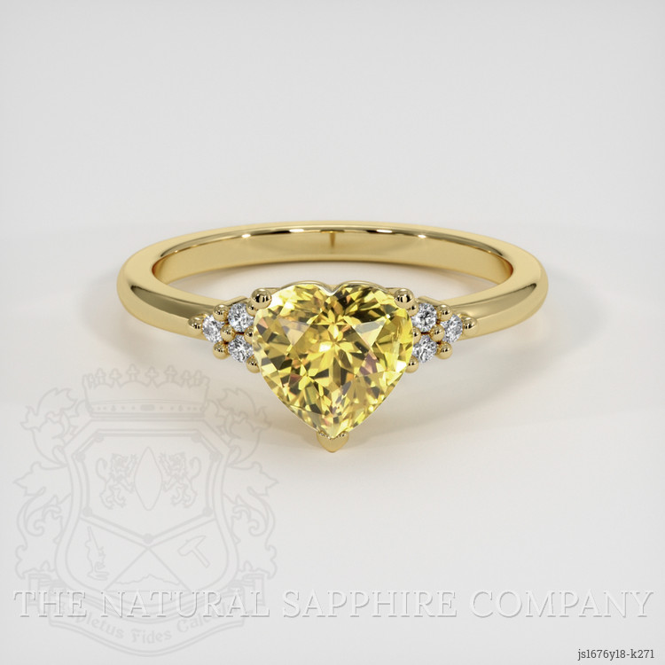 The ring features a beautiful, transparent 1.66 carat heart shape greenish yellow chrysoberyl with the dimensions of 6.75 x 7.09 x 4.91 mm and a mixed brilliant cut. It has a clarity grade of very slightly included (evaluated at eye level), medium intense color saturation, and an excellent polish. The origin of this chrysoberyl is Ceylon (Sri Lanka).