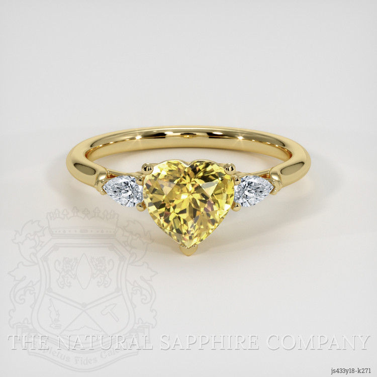 The ring features a beautiful, transparent 1.66 carat heart shape greenish yellow chrysoberyl with the dimensions of 6.75 x 7.09 x 4.91 mm and a mixed brilliant cut. It has a clarity grade of very slightly included (evaluated at eye level), medium intense color saturation, and an excellent polish. The origin of this chrysoberyl is Ceylon (Sri Lanka).