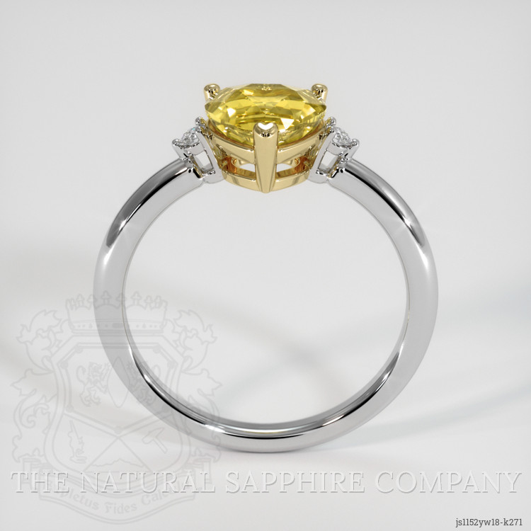 The ring features a beautiful, transparent 1.66 carat heart shape greenish yellow chrysoberyl with the dimensions of 6.75 x 7.09 x 4.91 mm and a mixed brilliant cut. It has a clarity grade of very slightly included (evaluated at eye level), medium intense color saturation, and an excellent polish. The origin of this chrysoberyl is Ceylon (Sri Lanka).