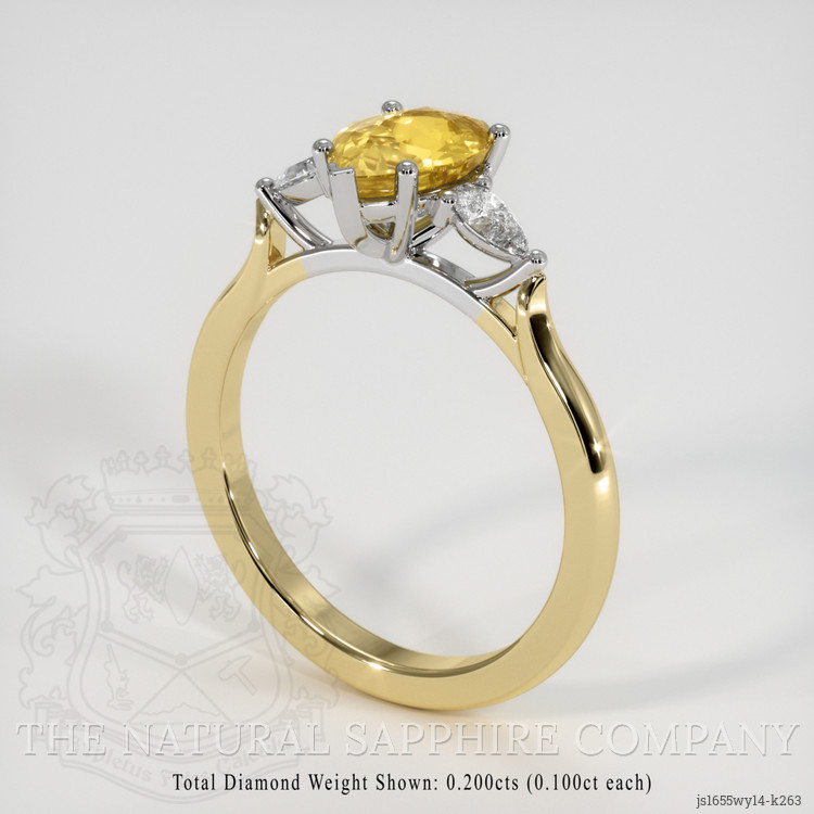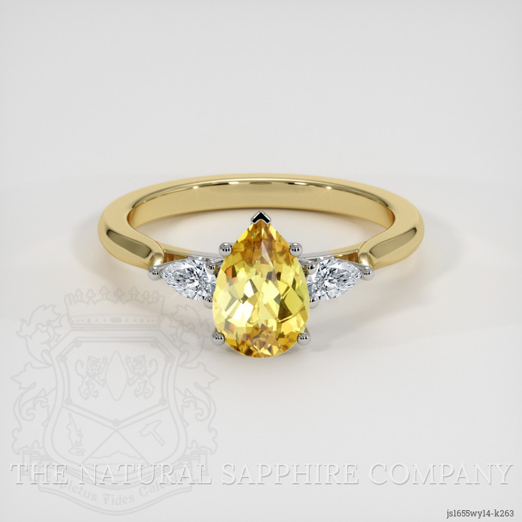 The ring features a beautiful, transparent 1.27 carat pear shape greenish yellow chrysoberyl with the dimensions of 8.30 x 5.77 x 3.71 mm and a mixed brilliant cut. It has a clarity grade of very slightly included (evaluated at eye level), intense color saturation, and an excellent polish. The origin of this chrysoberyl is Ceylon (Sri Lanka).
