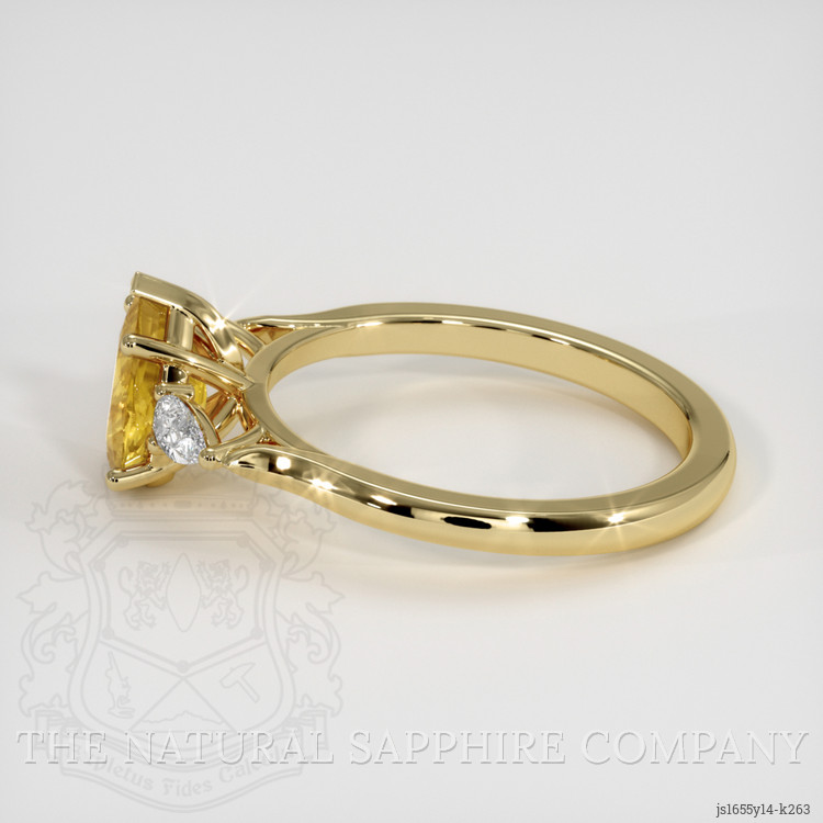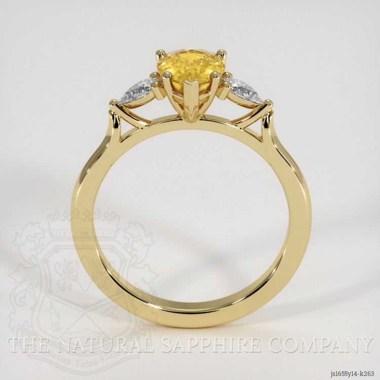 The ring features a beautiful, transparent 1.27 carat pear shape greenish yellow chrysoberyl with the dimensions of 8.30 x 5.77 x 3.71 mm and a mixed brilliant cut. It has a clarity grade of very slightly included (evaluated at eye level), intense color saturation, and an excellent polish. The origin of this chrysoberyl is Ceylon (Sri Lanka).