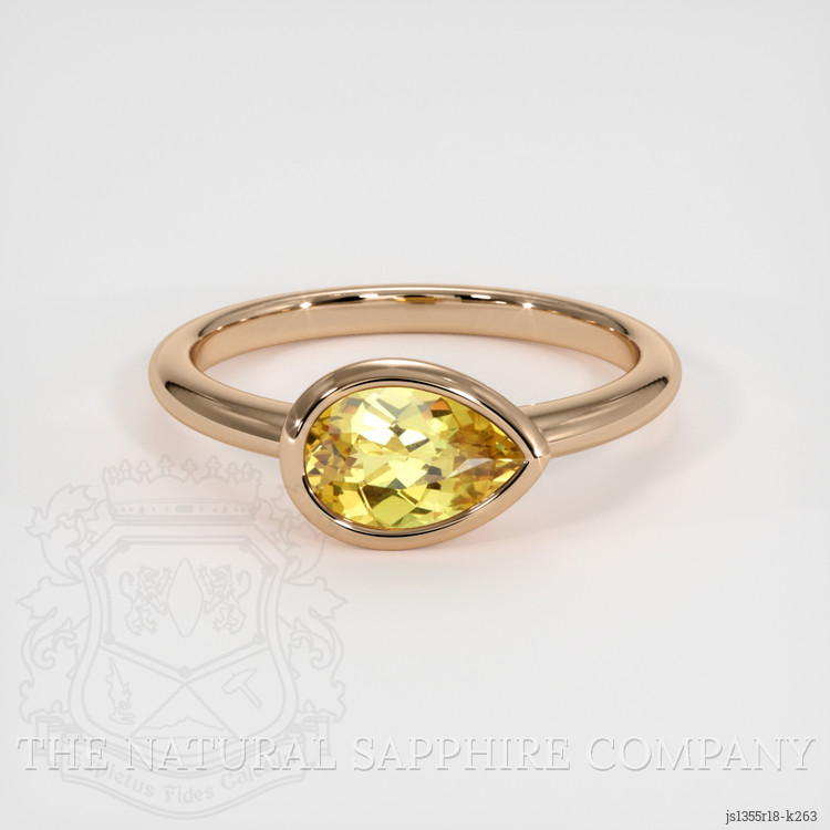 The ring features a beautiful, transparent 1.27 carat pear shape greenish yellow chrysoberyl with the dimensions of 8.30 x 5.77 x 3.71 mm and a mixed brilliant cut. It has a clarity grade of very slightly included (evaluated at eye level), intense color saturation, and an excellent polish. The origin of this chrysoberyl is Ceylon (Sri Lanka).