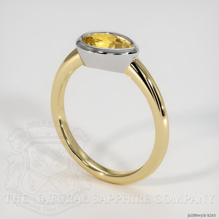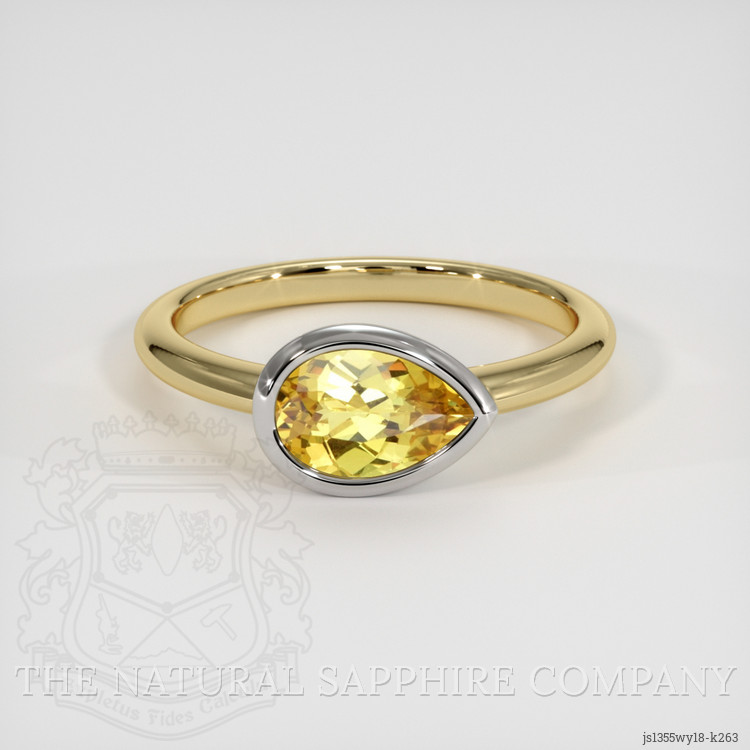 The ring features a beautiful, transparent 1.27 carat pear shape greenish yellow chrysoberyl with the dimensions of 8.30 x 5.77 x 3.71 mm and a mixed brilliant cut. It has a clarity grade of very slightly included (evaluated at eye level), intense color saturation, and an excellent polish. The origin of this chrysoberyl is Ceylon (Sri Lanka).